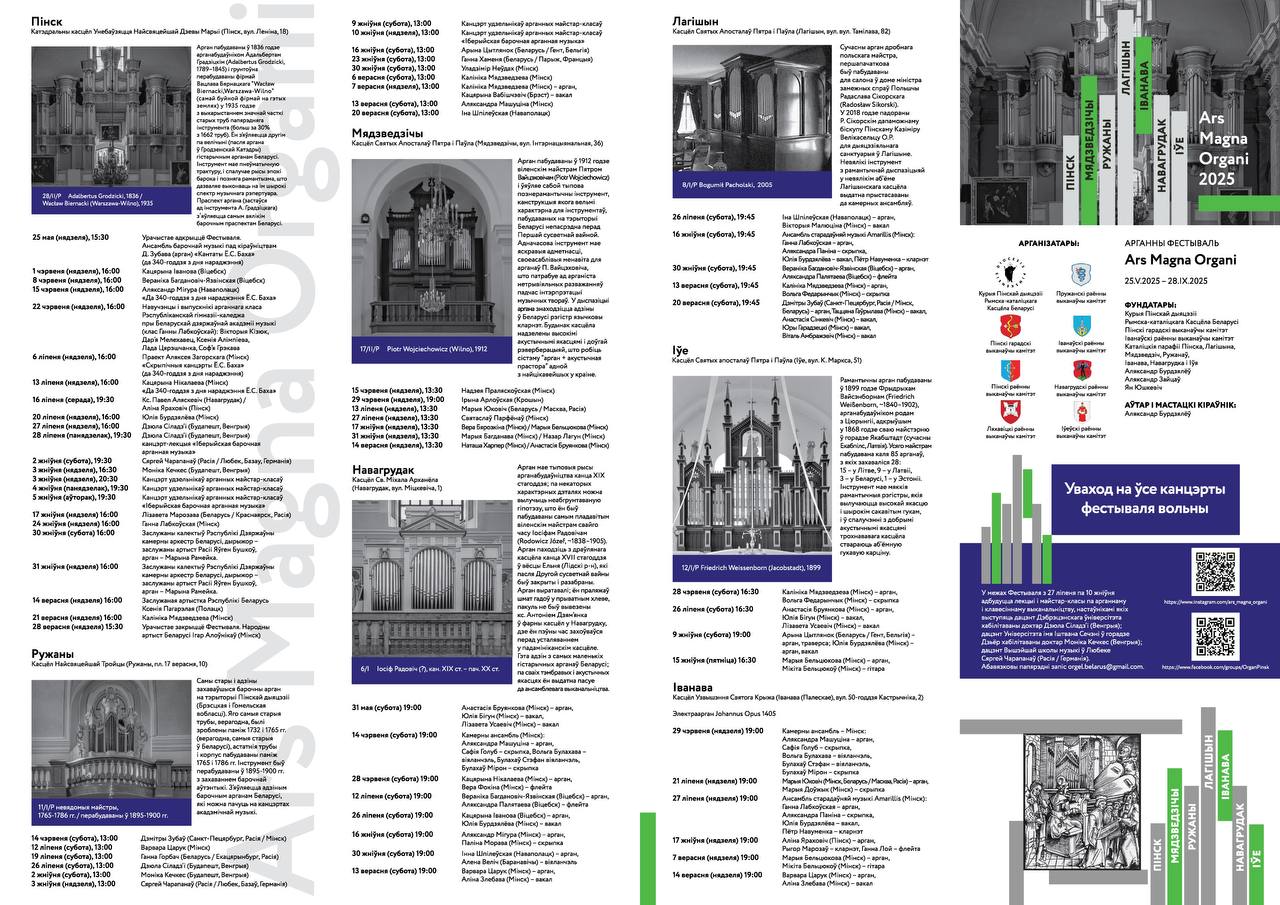 Ars Magna Organi — музыкальный фестиваль, который пройдет в разных городах Беларуси в этом году с мая по сентябрь.